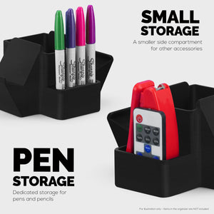 便利な収納コンパートメントはXNUMXつのコントローラーの間にあり、TVリモコン、RGBリモコン、セットトップボックスリモコンなど、最もよく使用するリモコンのいくつかに加えて、ペン、鉛筆、その他の小さなアクセサリなど、すべてがすっきりと収納できます。安全でアクセスしやすい。